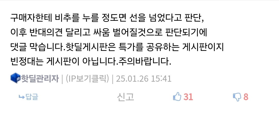 예전에 03사태언저리였나쯤에 핫딜관리자가 밴한 광고계정 황달이 자꾸 풀어준다고 둘이서 트러블있었다고 이야기돌지 않았음? | 25.02.03 23:11 | | |
