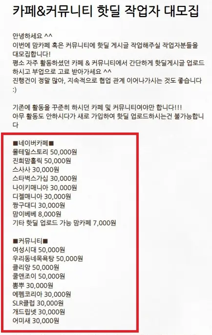 쪽지로 오는 바이럴 게시대행을 수락하면