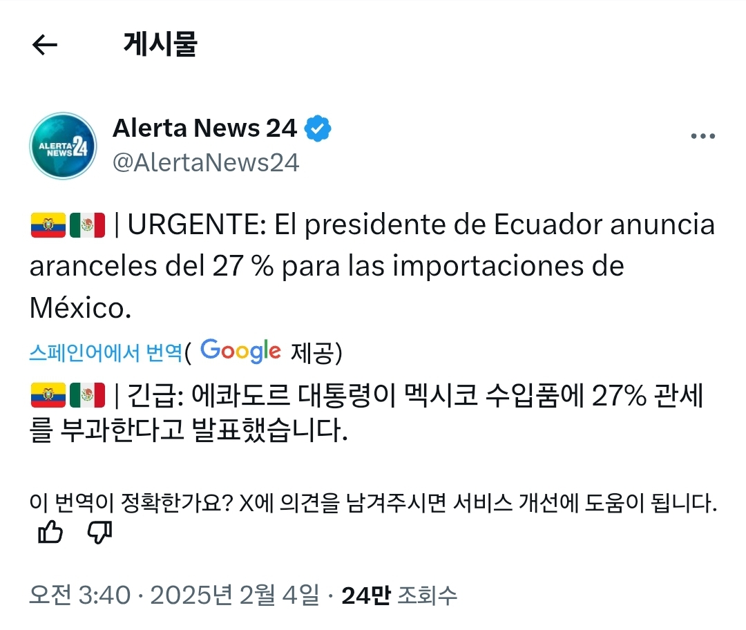 머야 아직 그 상태면 머 관세면 마일드? 한 싸움이네 | 25.02.04 07:46 | | |