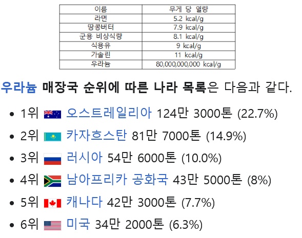 납과 카드늄 애들에게 먹일거면 우라늄도 많은 나라니 우라늄이나 먹여 칼로리 보급이나 시켜줘라. ㅋ