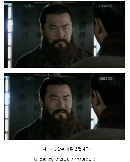 한중에서 돌아 온 뒤 한참 후 군기누설 핑계로 잡아죽임. 주변에서 억울하다 소리지르니까 오히려 양수가 나는 이미 죽을 몸이라고 위로함. 죽을때도 한결같이 속마음만 읽고간 새키... | 25.02.04 14:25 | | |