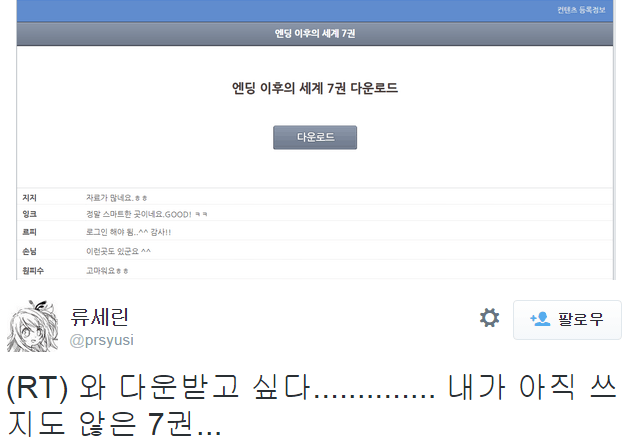 ㅋㅋㅋㅋ 소설가가 웹하드 보고 자기가 아직 안쓴 소설 받고싶다고 하는거 생각나네 ㅋㅋㅋ