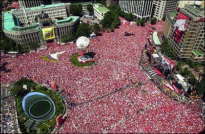 대충 2002년 당시 시청광장 모습....... 요즘 정치 집회도 웬만큼 큰 건 터지지 않는 이상 저 정도는 안 모일건데 ㅋㅋㅋㅋ