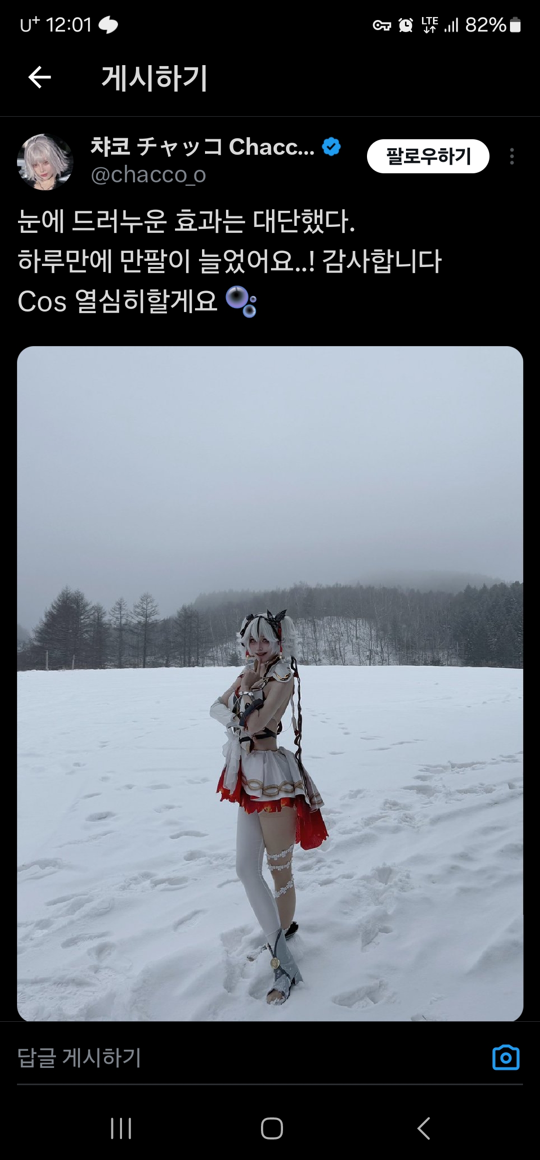 눈밭 사진올리고 팔로우가 만명느셧다고