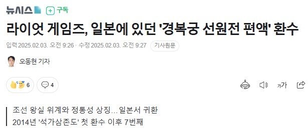 최근에 또 경복궁꺼 였던가? 우리나라 유물 큰거 하나 들고왔다던데? | 25.02.05 12:39 | | |
