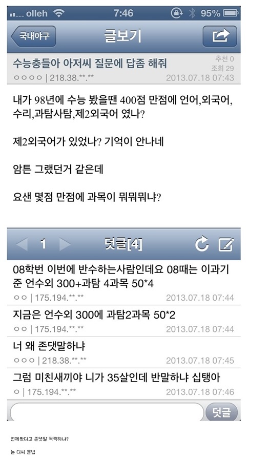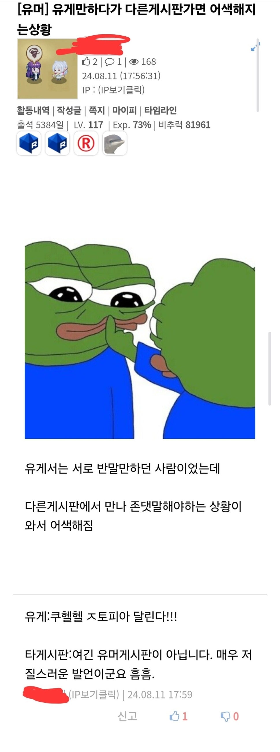 종종 진성 유게이 중에서도 다른게시판 가서 평상시대로 반말썼다가 대참사 벌어지는 경우가 있지ㅋㅋㅋㅋㅋㅋㅋㅋㅋ