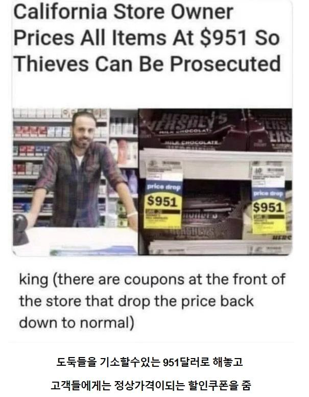어느 주에서 950달러 이하는 생계형강도라고 신고조차 안되는 법안이 발의되었다. 이런 이야기 들은적있음 | 25.02.05 14:43 | | |
