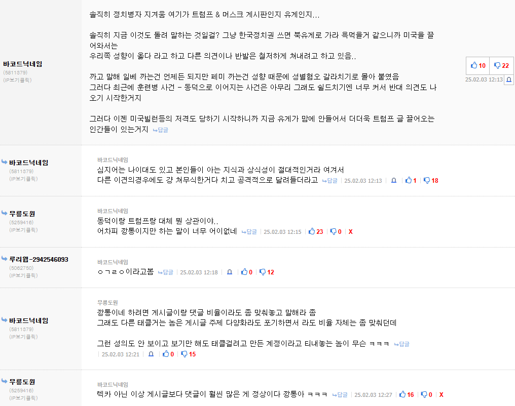 ㄹㅇ구글계정 막기전까지는 여기도 머... 분탕 천국이었지 ㅅㅂ ㅋㅋ | 25.02.05 22:47 | | |