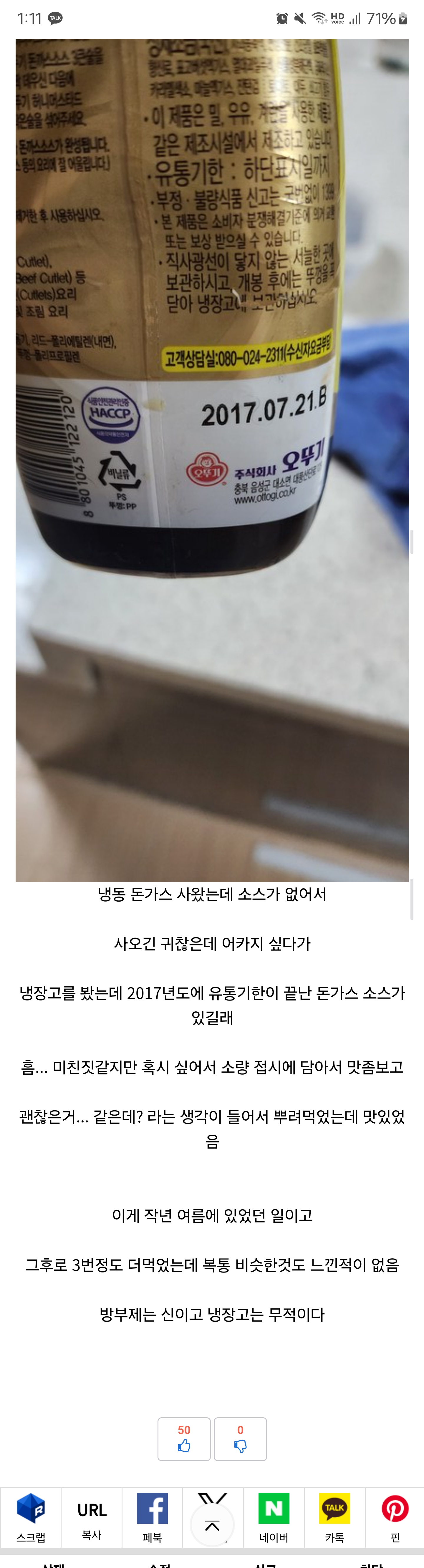 유통기한이랑 소비기한은 다르고 저때면 유통기한만 표시해뒀겠네. 소스류중에 저런 종류는 생각보다 엄청 오래가긴 함. 그렇다고 뚜껑딴 7년짜리 소스가 괜찮다는 건 아님.... | 25.02.06 14:15 | | |