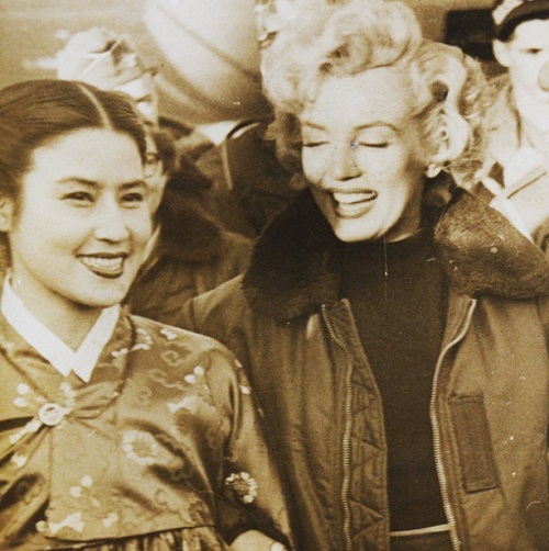 한국전쟁 당시 위문공연에서 함께 한 최은희와 마릴린 먼로