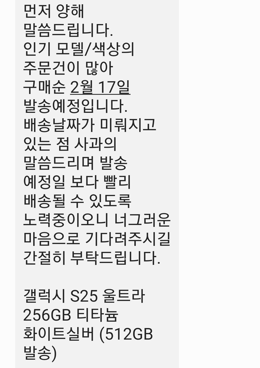외 1건 < 이게 울트라 예약인듯 1월 24일이 사전예약 첫날이었고 사전예약자들은 2월 3일부터 배송시작~, 정발일은 2월 7일임 ㅋㅋㅋㅋ 사전예약을 했는데 정발보다 더 늦게받게된거 | 25.02.07 13:08 | | |