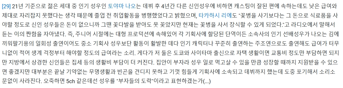 신인때 밥값이 없어 굶고 차비없어 걸어다닌 성우들 많더라. 취미로 일하는 부자면 모를까 당장 먹을 쌀이 없는데 월급을 개잡 코인으로 받겠냐고... | 25.02.06 20:16 | | |