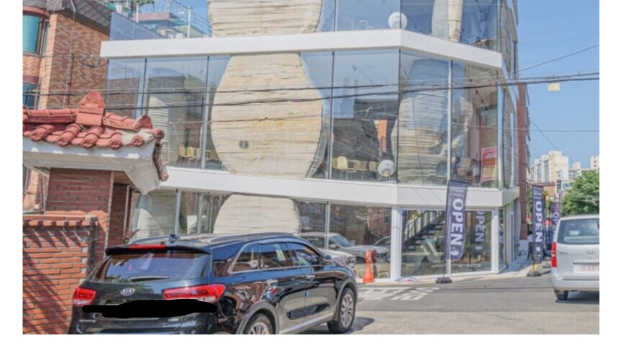 진짜 특이하게 생겼네 조온나 큰 돌을 놓고 유리창이 돌을 침범 안하게 깎아놔서 돌이 그대로 노출되네 ㅋㅋㅋ