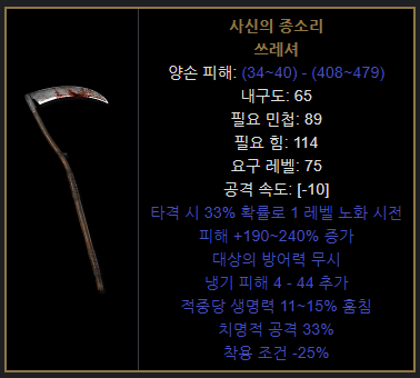 무기 맞습니다. 다만 클래스 전용 무기가 아니라 전 클래스 모두 사용 가능 | 25.02.07 11:22 | | |