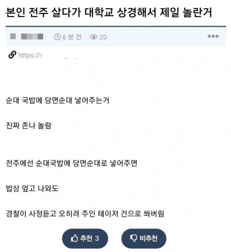 말만 듣다 이번에 처음으로 당면순대국 먹어봤는데.....진짜 왜 다들 진심으로 욕하는 지 알겠더라 ㅠㅠ 진짜 안넣는게 나을정도 | 25.02.07 12:20 | | |