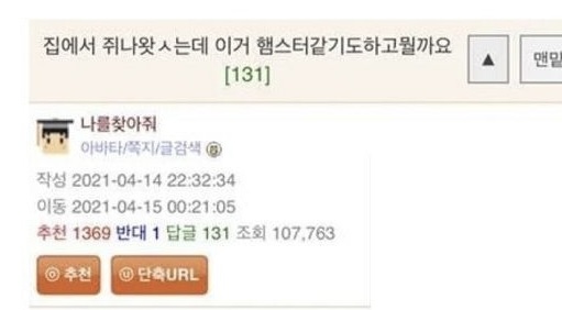 헐~~ 쓰니 햄스터야?