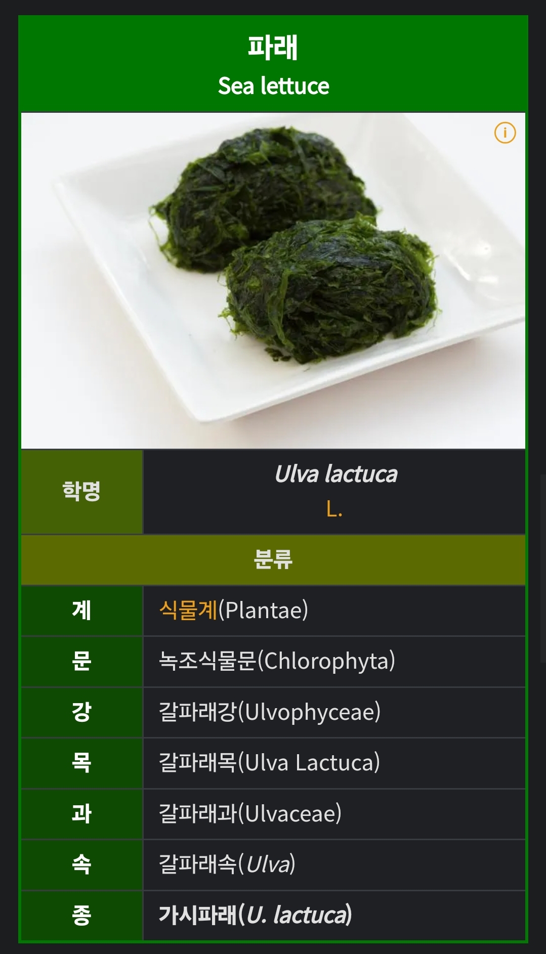 근데 의외로 파래는 식물임. 얘는 녹조류라서 그런가. | 25.02.08 23:02 | | |