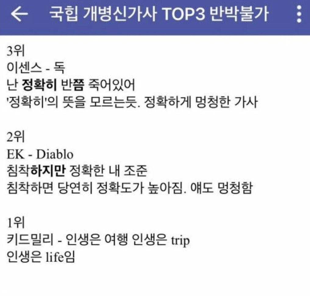 한국어 문장구조 때문에 라임 맞추는 거에 한계가 강다는 건 이미 십몇년전 피타입 선에서 논파됐음 | 25.02.09 01:07 | | |