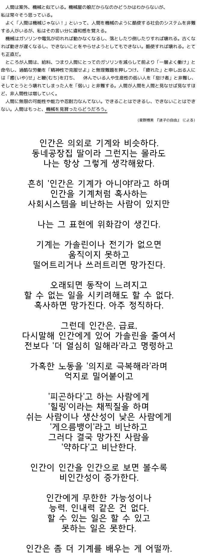 옛날에는 근면하면 보답받는다고 사회적 분위기가 그렇게 돌아갔기 때문에 사람들이 별로 딴지를 안걸었음 그런데 지금 와선 그게 다 개 구라였단걸 알음. 근면이 곧 성공으로 이어지지 않기 때문에. 그리고 성공하지 못한 인생이라고 실패한게 아닌데 자꾸 성공하지 않으면 넌 도태된거라는 그런 가스라이팅을 시도함.