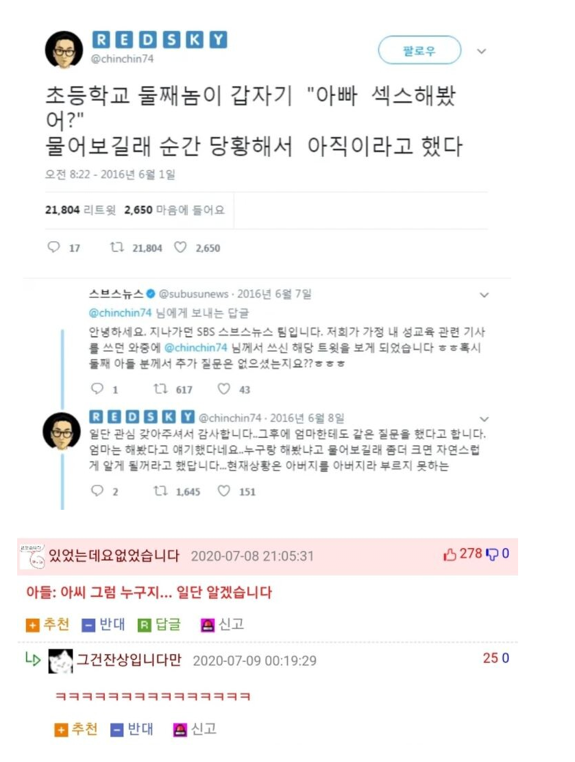 ??: 아빠! ㅅㅅ해봤어?? 아빠: 어..아..아니; | 25.02.09 20:55 | | |