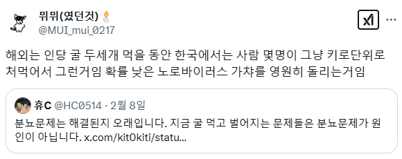 서양굴도 노로바이러스 많다던데 | 25.02.09 20:56 | | |