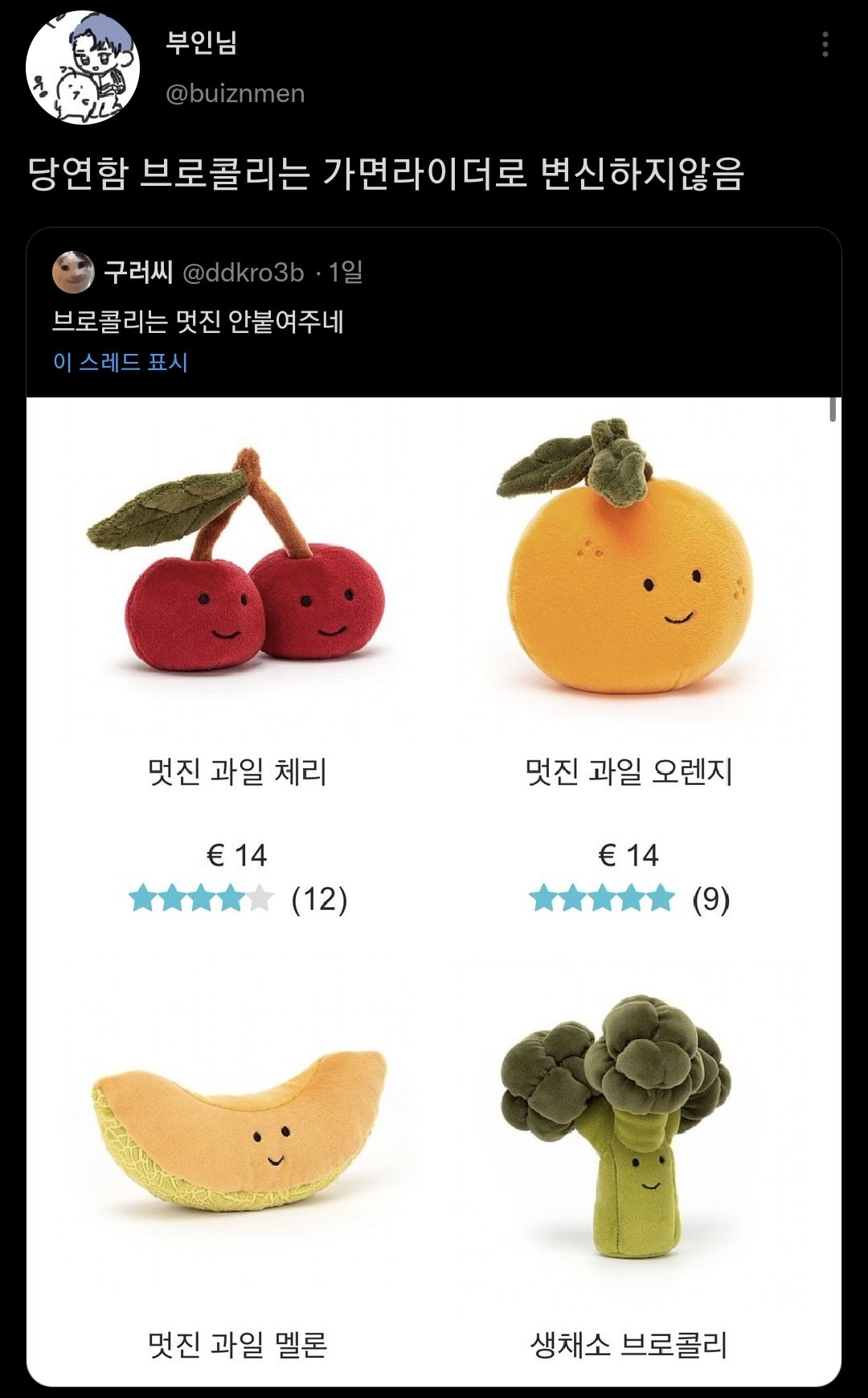 그야 브로콜리는 과일이 아니기 때문에 멋지지 않잖아