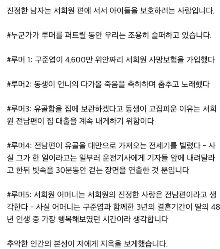 보험금노리고 구준엽이 배우자 죽인거다 etc 선동질 | 25.02.10 12:22 | | |