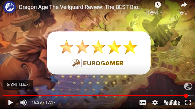 드래곤 에이지 베일가드엔 100점을 주었다는 것을 거론하며