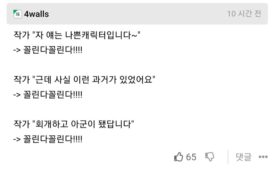마음에 안들면 그냥 안보면 되니까 따라갈거면 철저하게 작가 의향대로 읽음