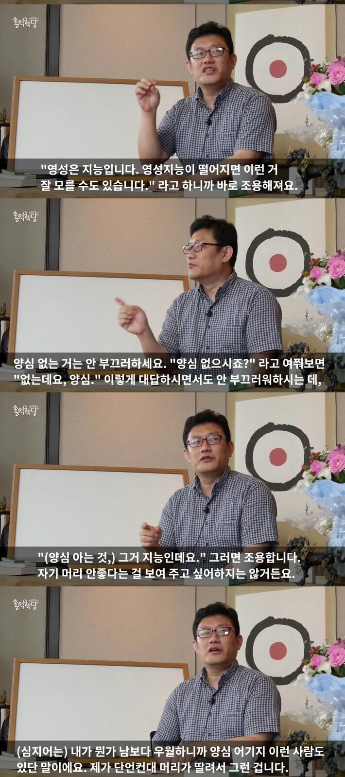 남이 치부라고 생각하는걸 들춰서 알리는걸 '난 사실을 말했을 뿐인데 왜그럼?' 이지랄을 하는건 복잡하게 생각할거 없이 사회지능의 문제임. 타인의 감정에 공감하지 못하고 관종도파민만 쫒아다니는 단세포라 저러는거.