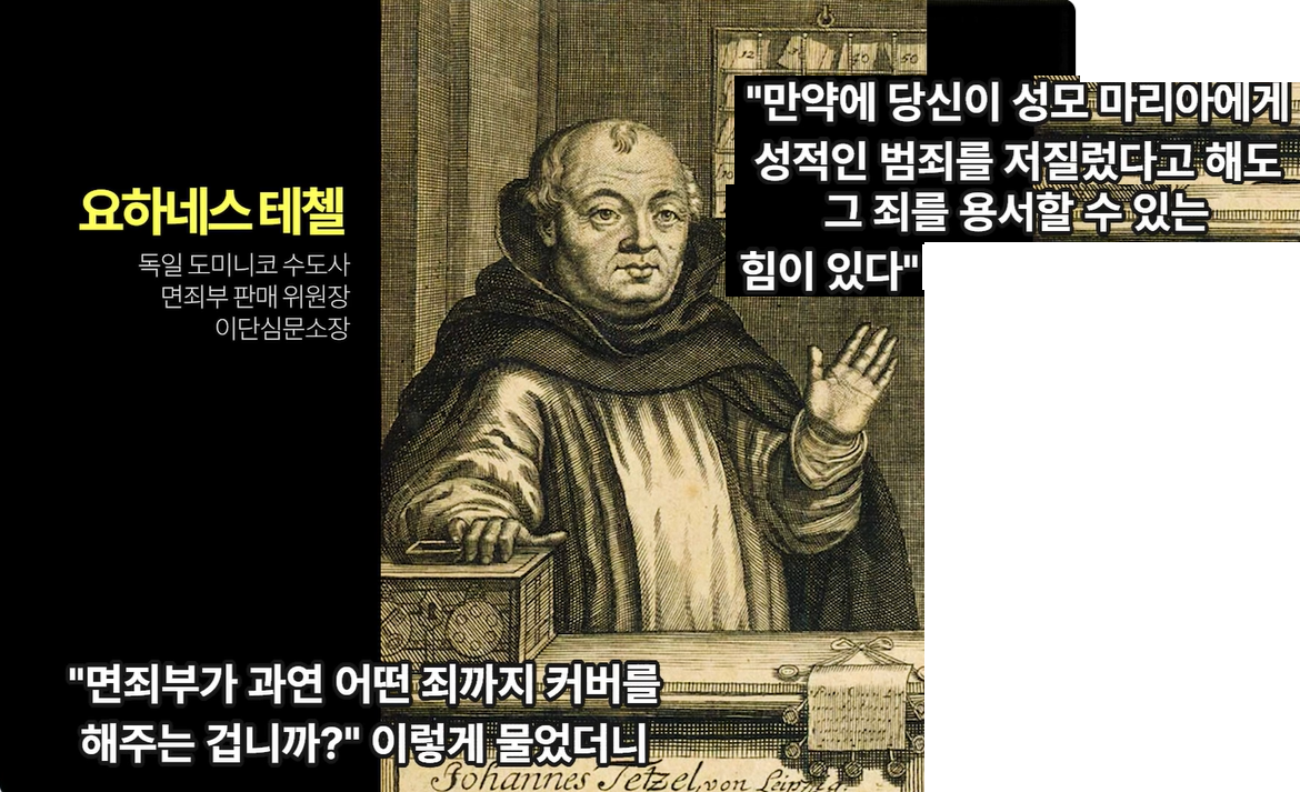 면벌부가 맞데 사람이 죽으면 지옥에 가서 지은 죄만큼 거기서 벌을 받는데 면벌부를 사면 그 지옥에서 그만큼 빨리 나온다고 했데 그래서 위에 글에도 영혼이 연옥에서 빠져나온다는 문구가 있는거고.. | 25.02.11 13:39 | | |