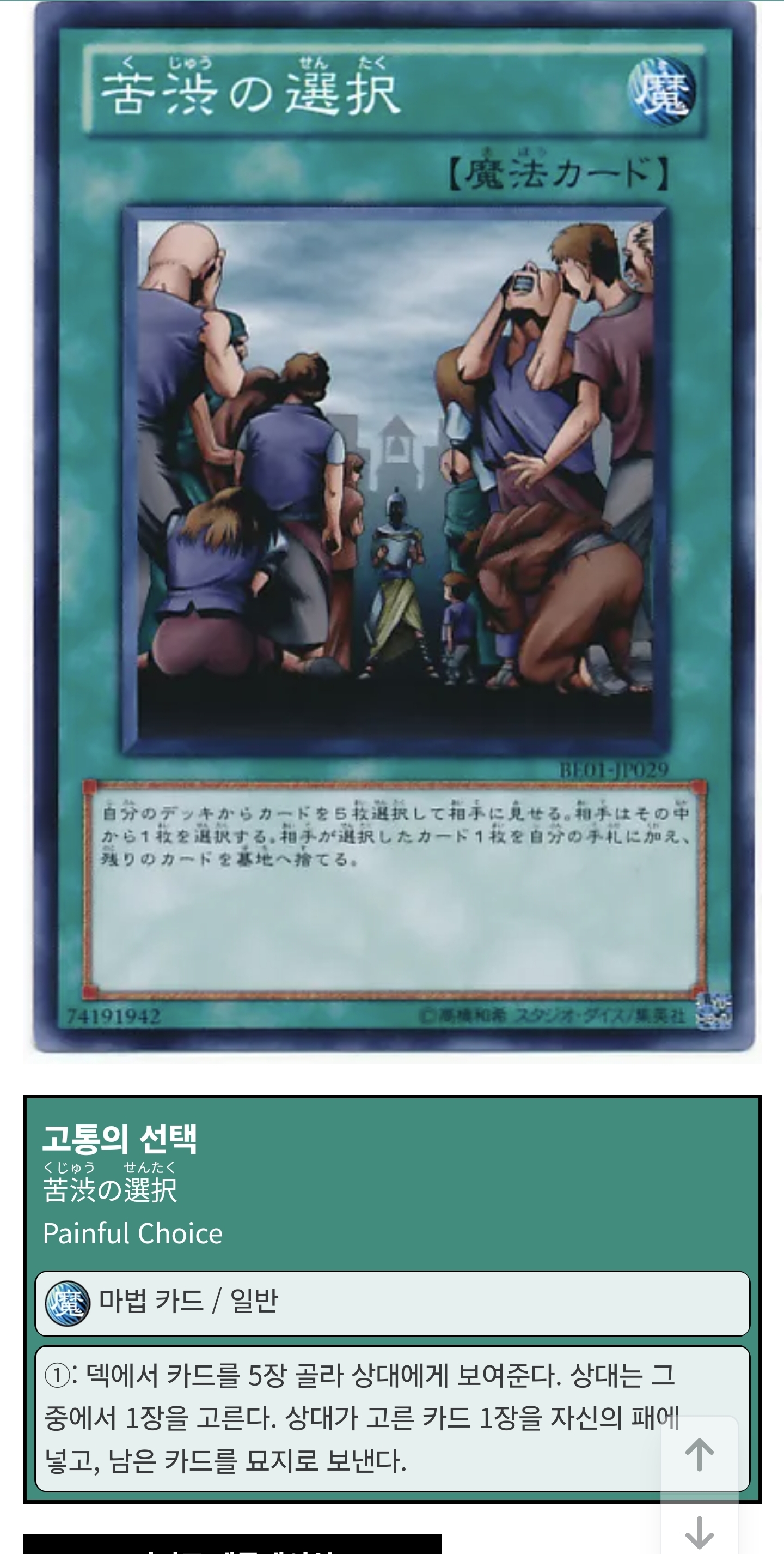 고통의 선택이었나? 근데 일반 유게이는 저 카드의 효과를 일본어로 적으면 못 읽는다고!