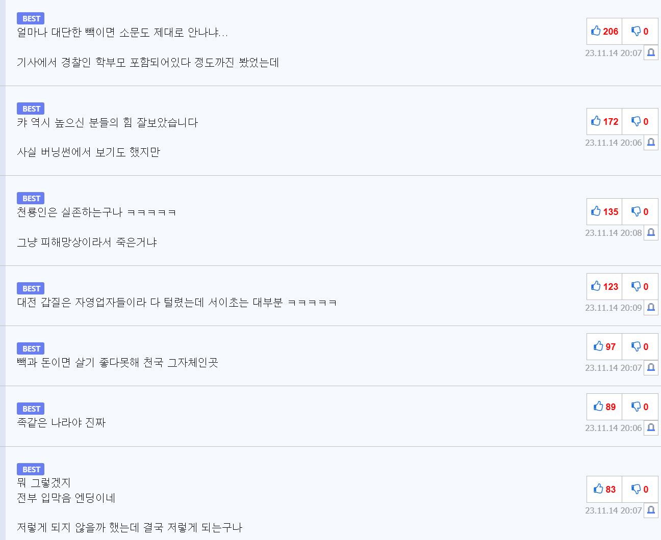 작년 11월 서이초 사건 종결 게시물 유게 베댓 ㅎㅎ | 25.02.11 15:41 | | |