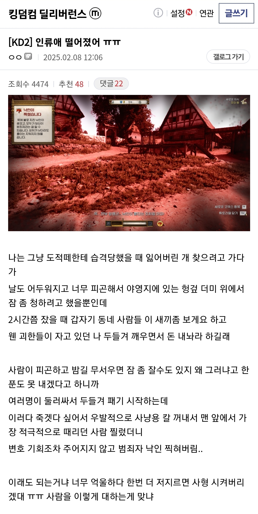 근데 퀘스트 진행하려면 레벨업해야돼 근데 싸움으로 레벨업하기 힘듬. 적이 2명만 있어도 순삭 당하고 지식 매력도 떨어져서 말빨로 안먹임. 고로 야간에 집털이가 제일 안정적인? 경험치 냠냠으로 이어지는 중세도둑시뮬레이터 게임 킹덤컴임. 도둑질을 적어도 한번 이상은 해야함.