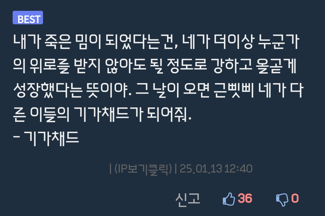 그래도 누물보 누칼협 느금마같이 피폐해지는 밈을 보느니 기가차드 볼거임