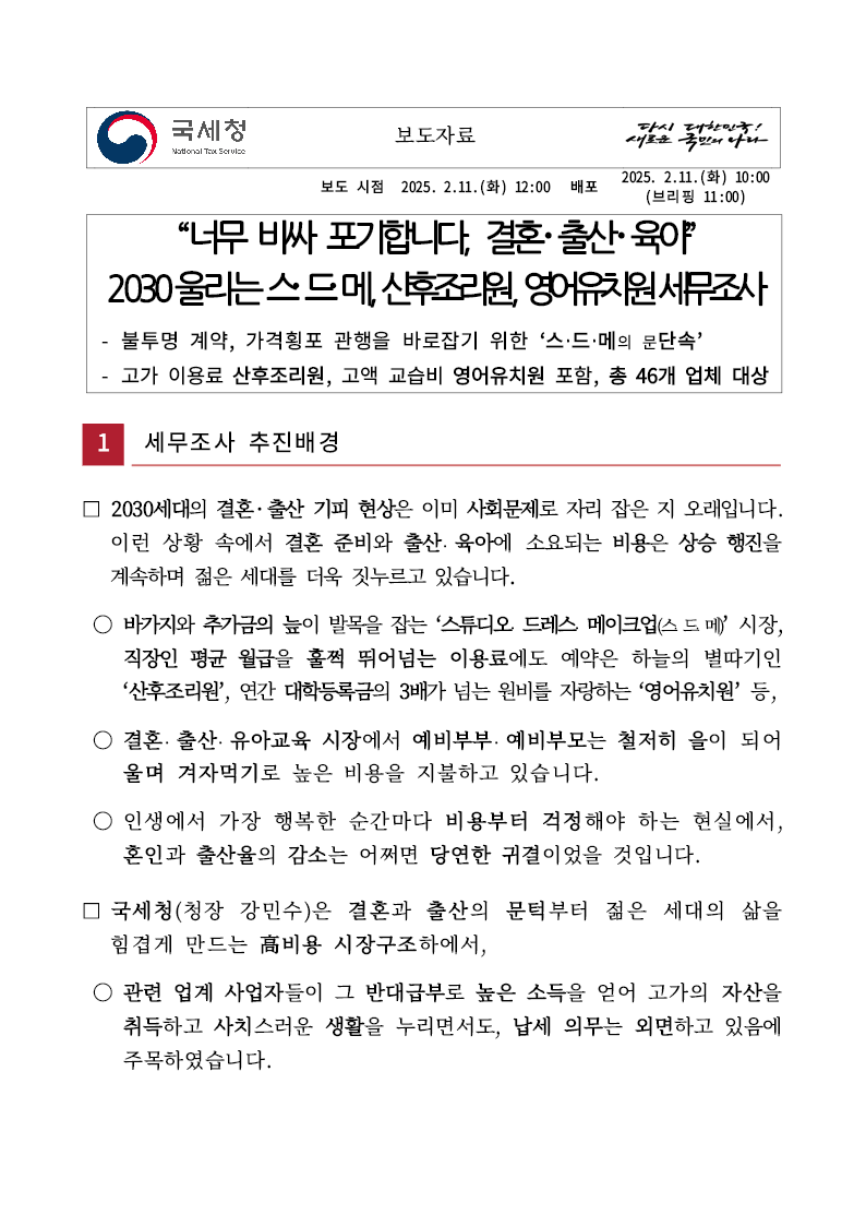 국세청의 역할 내에서 할 수 있는걸 하는 거니까 비싸다는 문제는 다른 곳에서 힘써야지 | 25.02.12 11:31 | | |