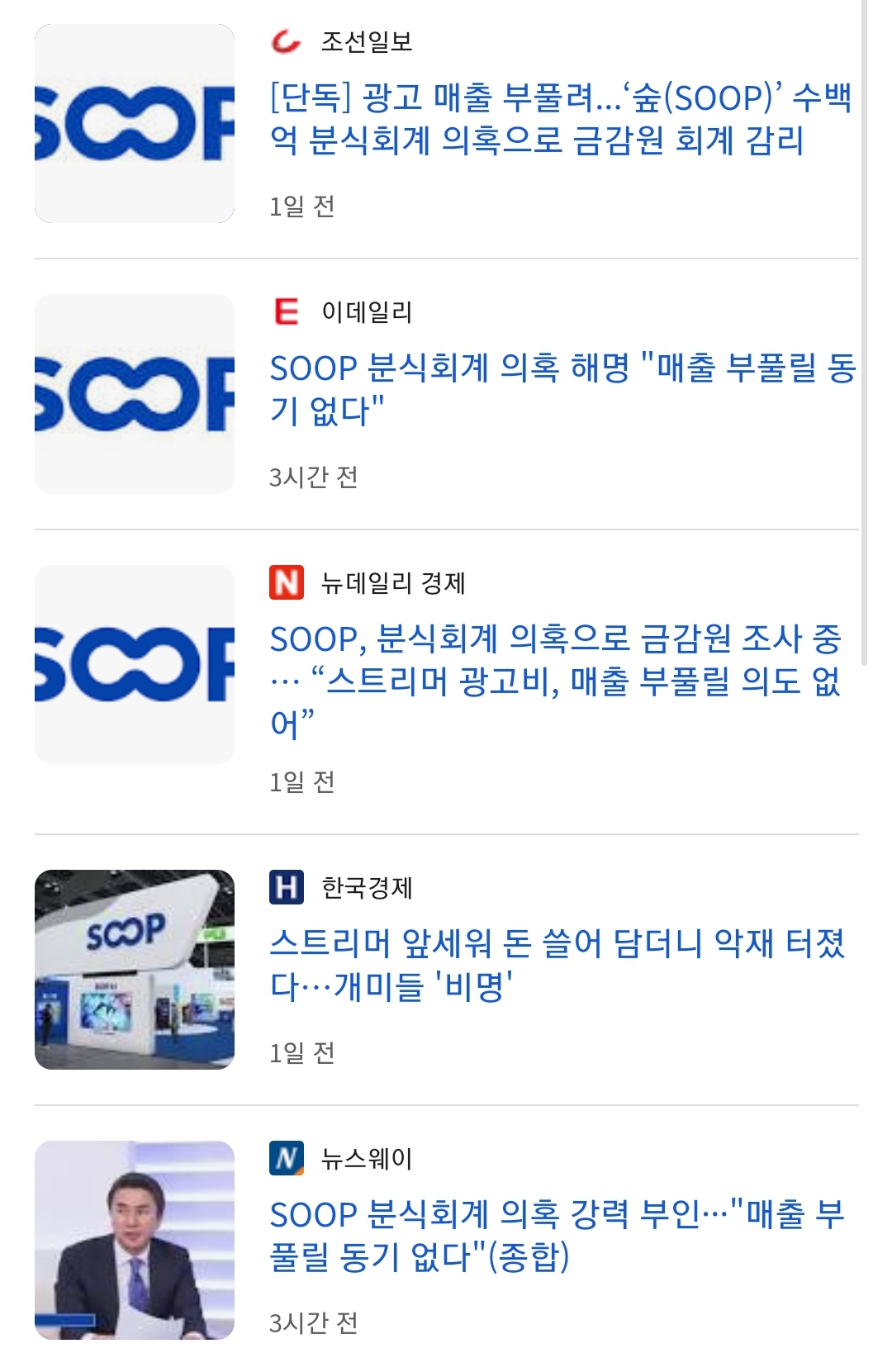 광고 매출을 부풀려서 분식회계릉 했다는 의혹이 있지 | 25.02.12 17:33 | | |