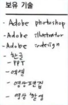 심지어 자격증도 아님. 한글, ppt, 엑셀이라고 쓰는게 아니라 자격증명(최소한 워드 프로세서)을 써야지. | 25.02.13 10:57 | | |