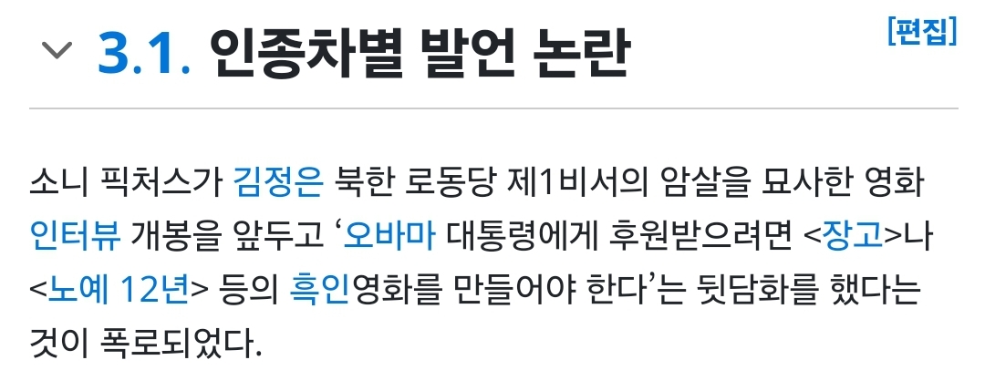 뉴스파 애니메이터들 비하하거나 영화 디 인터뷰로 빡친 정은이가 오바마 뒷담깐거 해킹해서 폭로한거 생각하면 이상하지 않긴함 | 25.02.13 16:04 | | |