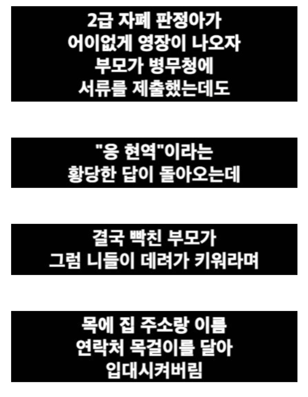 근데 병무청놈들 하는 꼬라지를 보면 진짜 저런일이 아예 없지는 않았을거같다는 생각이 너무 많이 들어...
