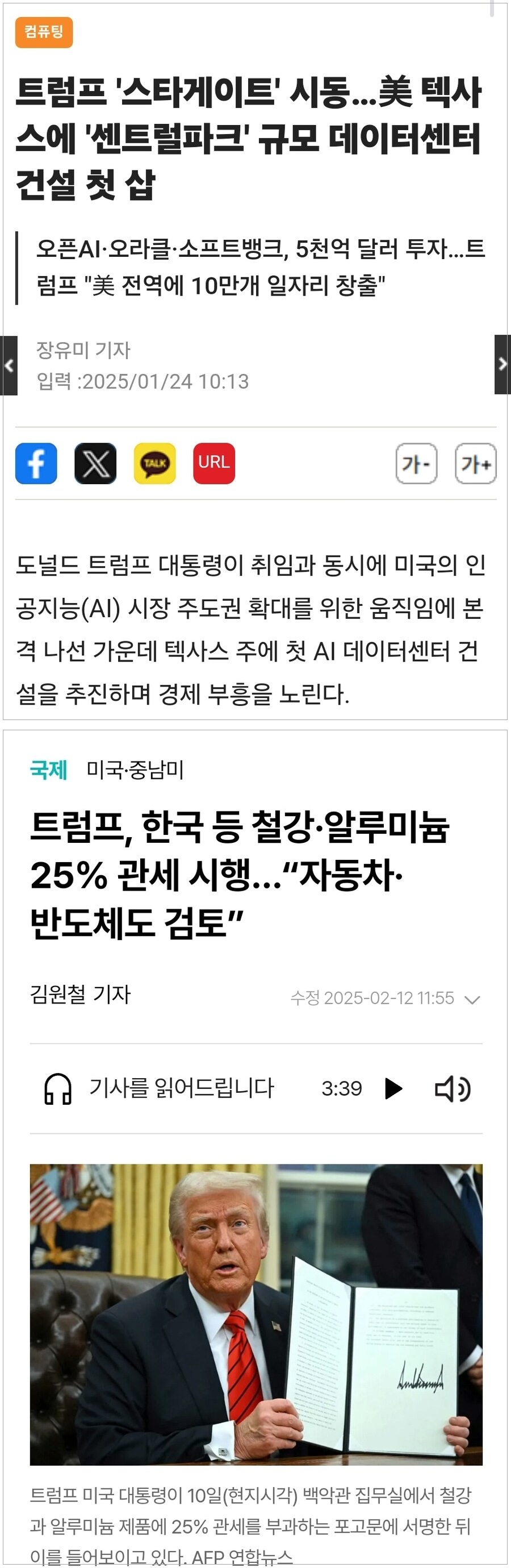 텍사스에 세계 최대 AI 데이터센터 짓는다고 해놓고 한 달도 안 지나서 철강 알루미늄 반도체 관세 먹인 놈들인데 뭘....