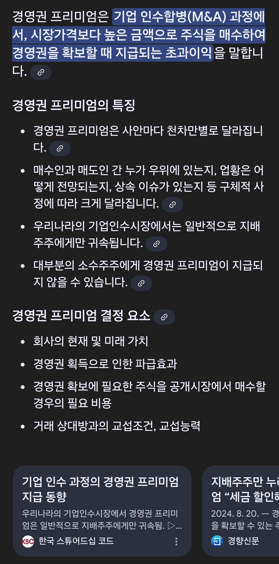 그만큼 대주주와 경영자들이 기를 쓰고 회사를 성장시키고 주주환원에 목매게 됨. 장점은 주주들에게 이익이 돌아가면서 경영권을 지키게 되고 회사를 성장시켜야 되기 때문에 점점 회사가 커져서 외부에서 적대적 M&A를 하기가 힘들어짐. 단점은 일단 주주들에게 이익이 되면 되니까 보잉처럼 재무쟁이들이 CEO돼서 원가절감등 일시적 수익을 만들고 주주환원하면서 회사의 장기적 성장동력을 깎아버릴 수 있음. | 25.02.14 21:14 | | |