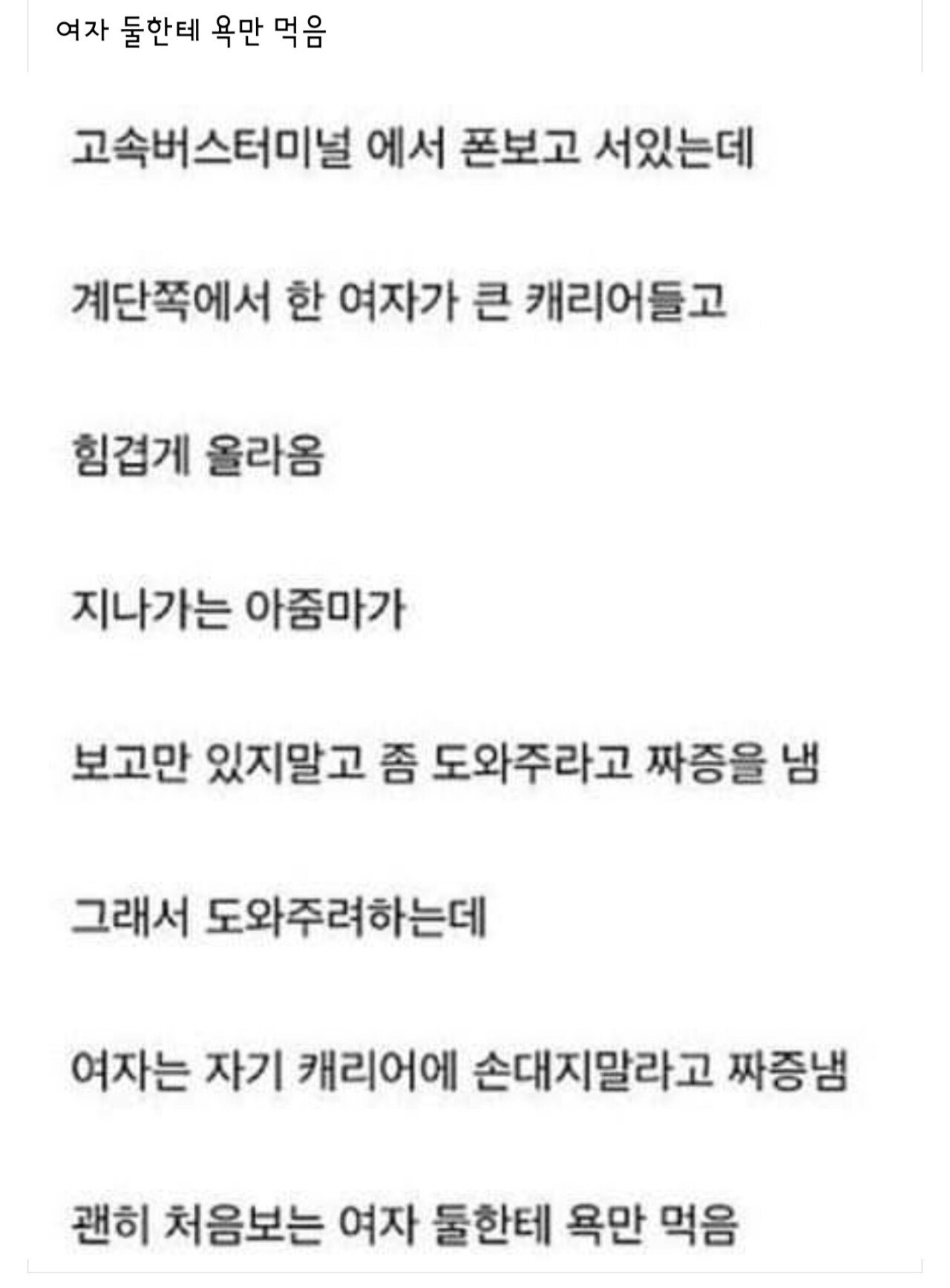 보나마나 아줌마도 캐리어녀한테 들리는소리로 말했을텐데 쌍이맞지. | 25.02.15 00:41 | | |