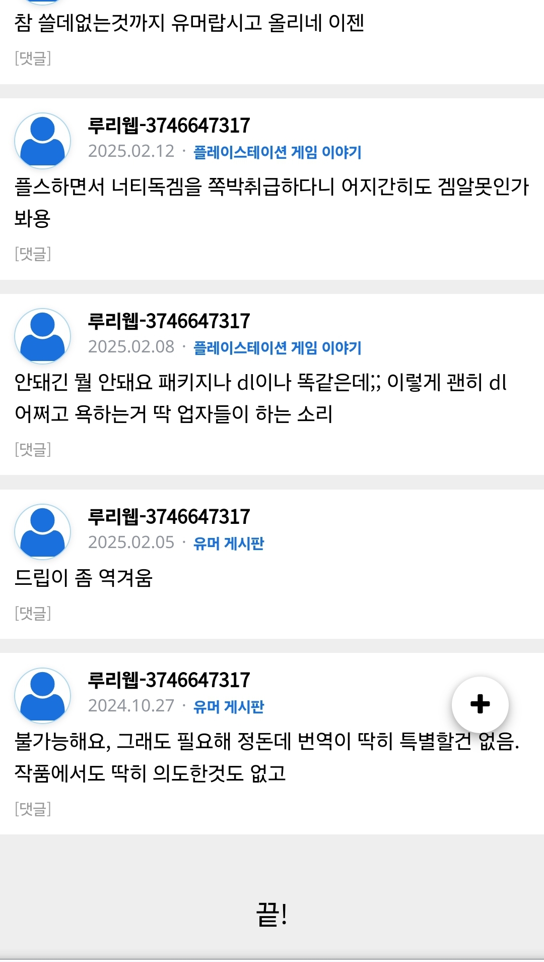아침유게도 제정신이 없네 ㅋㅌㅋㅋㅋㅋㅋㅋ | 25.02.15 08:51 | | |