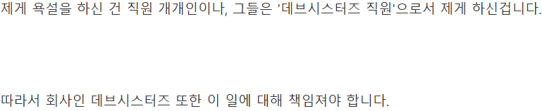 총대는 저 욕설을 직원 일탈이 아니라 회사가 책임쳐야 한다고 생각했고 회사 대표가 사과 했으니 끝난 일임