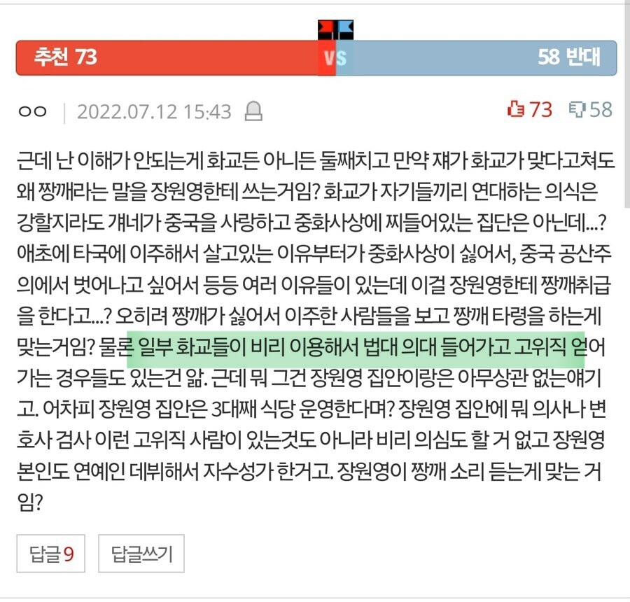 비리 이 ㅈㄹ하고 앉아 있네 ㅋㅋㅋㅋㅋㅋㅋ 외국인 전형으로 대학교를 쉽게 들어갈 순 있어도 고위직은 뭔 ㅋㅋㅋㅋㅋㅋ 내 지인 절반 이상이 화교인데 이런거 볼 때마다 짜증내던데 어디서 튀어나온 유언비어냐 이거 ㅋㅋㅋㅋㅋ | 25.02.15 15:56 | | |
