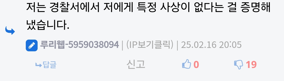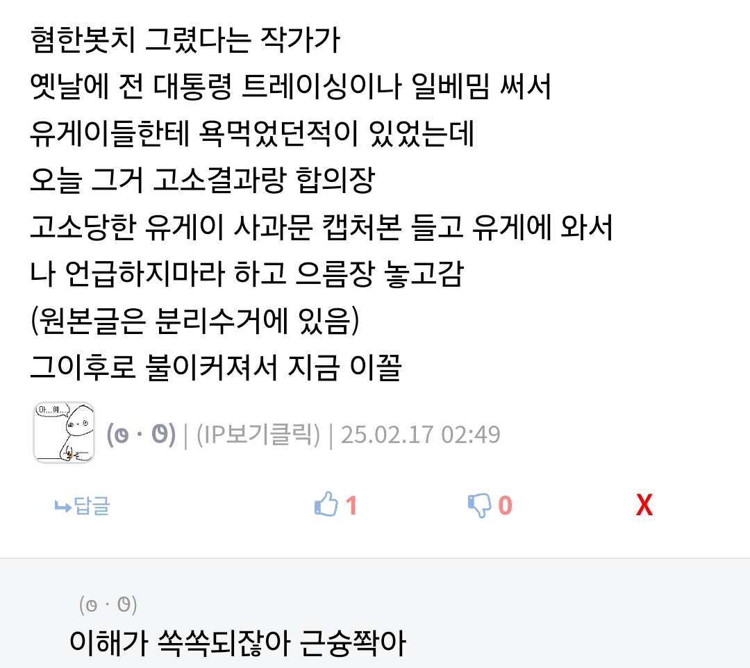 손바닥으로 하늘을 가린다. 어린건지 우길 게 그것 뿐인건지 | 25.02.17 02:57 | | |