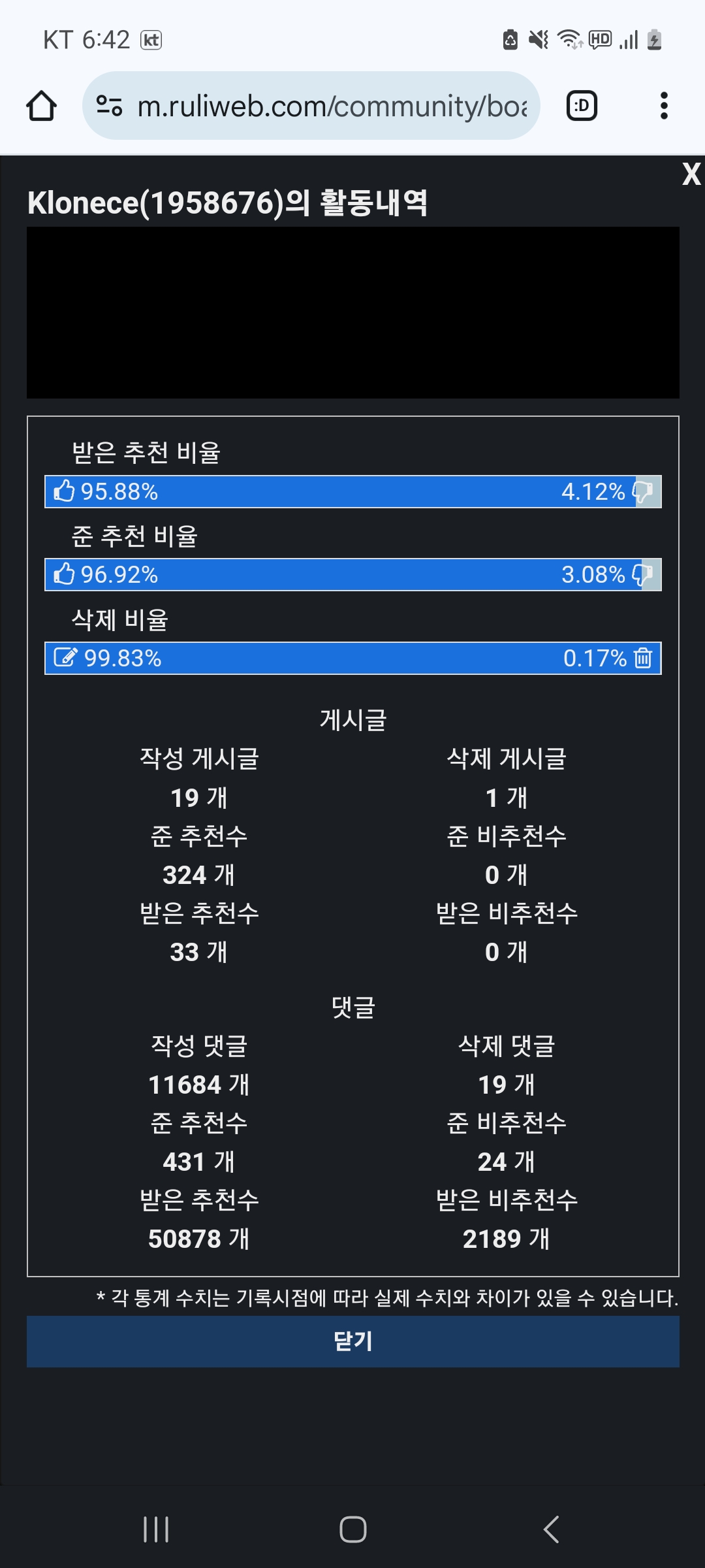 그래서 원래 받은 추비추 비율 90퍼 이상 본인 삭제비율 50퍼이상 정도로 기준잡고 분탕이냐 아니냐 판단했었는데 그 사건 다음부턴 본인 삭제비율은 기준에서 뺌 | 25.02.17 06:38 | | |