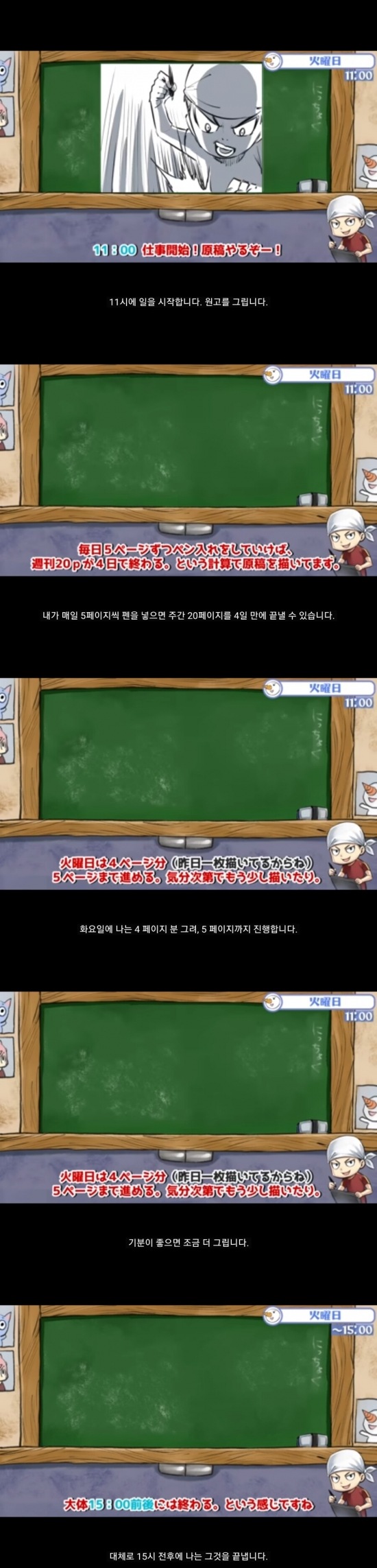[일본 주간연재는 보통 고강도의 스캐줄이다... 보통 출판사에서 인기가 중간만되도 주간연재를 안정적으로 할수있는 작가를 a급으로 취급한다.]