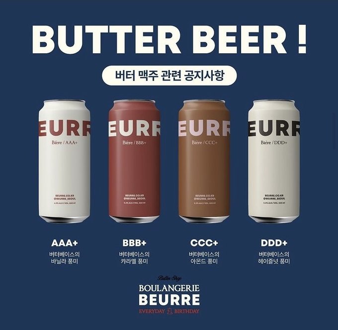 한때 유행한 버터 맥주인데 뵈르(버터) 라는 업체가 만든거라 상표 붙인거라고 주장했는데 정작 광고에서는 버터 베이스로 풍미가 느껴진다고 광고해서 낚시가 아닌가함 | 25.02.18 15:20 | | |